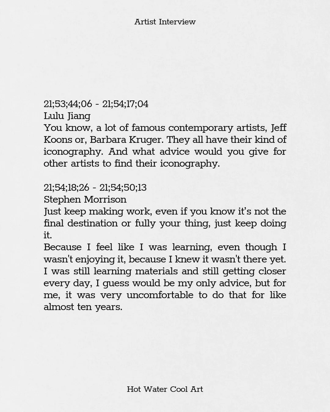 Hot Water Cool Art is for people who think art is essential in their life, it’s for people who want to be inspired by art and creative perspective and stay relevant in the art world.