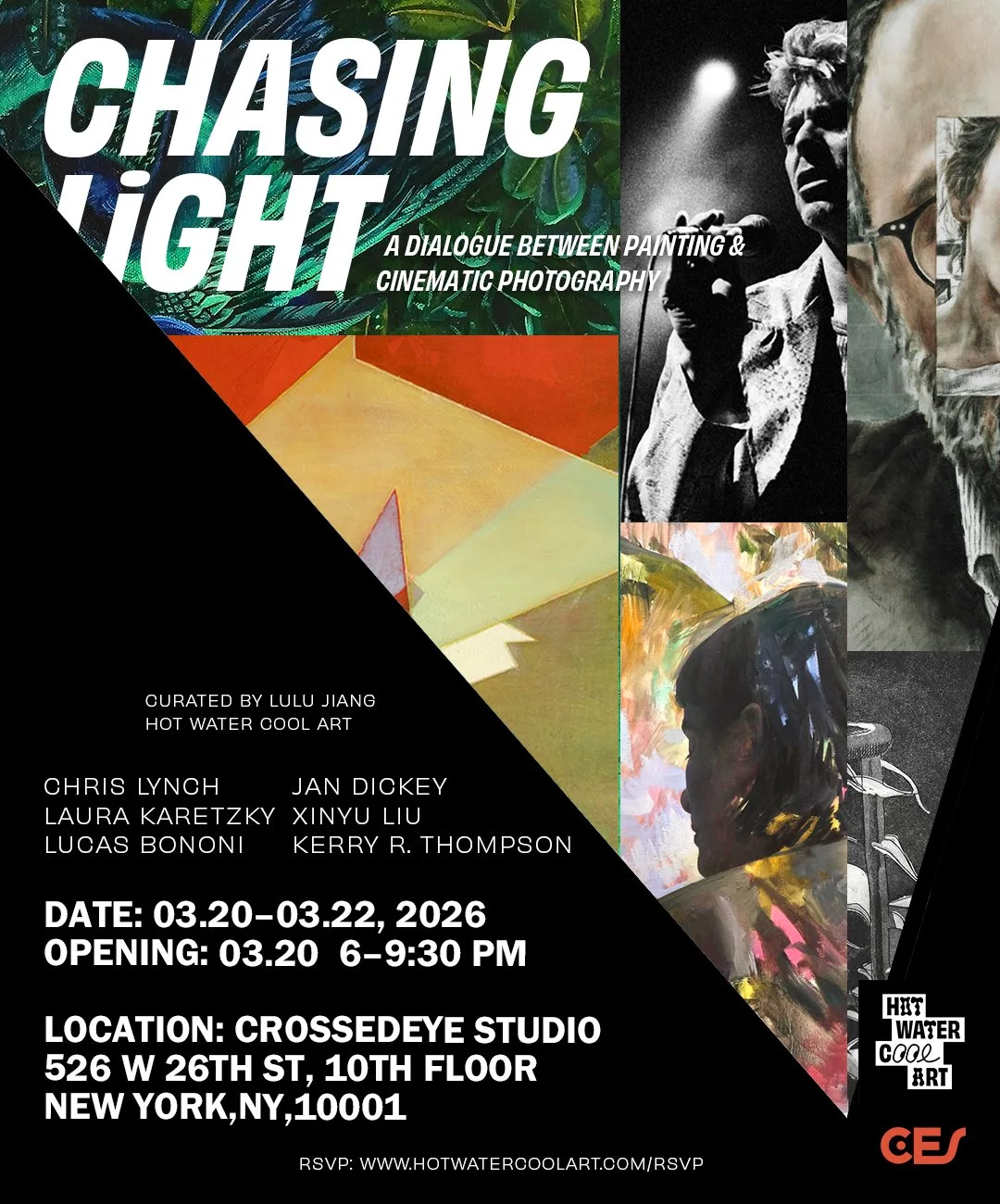 This exhibition takes place in the studio of renowned photographer Chris Lynch, whose lens has captured icons including David Bowie, the Pope, and Muhammad Ali. Within this storied space, light becomes both subject and collaborator. Collectors are invited to experience how these artists shape memory, mood, and narrative—each chasing light in their own unforgettable way.